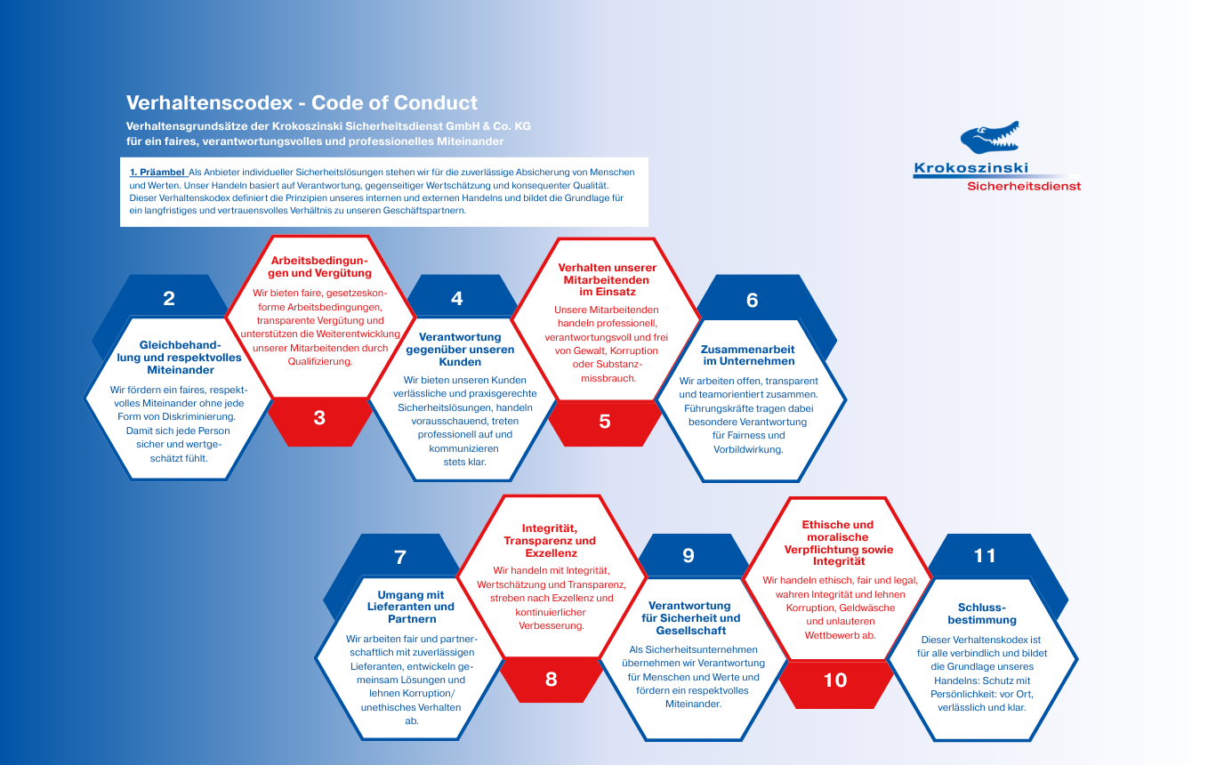 Hier finden Sie den Code of Conduct der Krokoszinski Sicherheitsdienst GmbH & Co. KG.